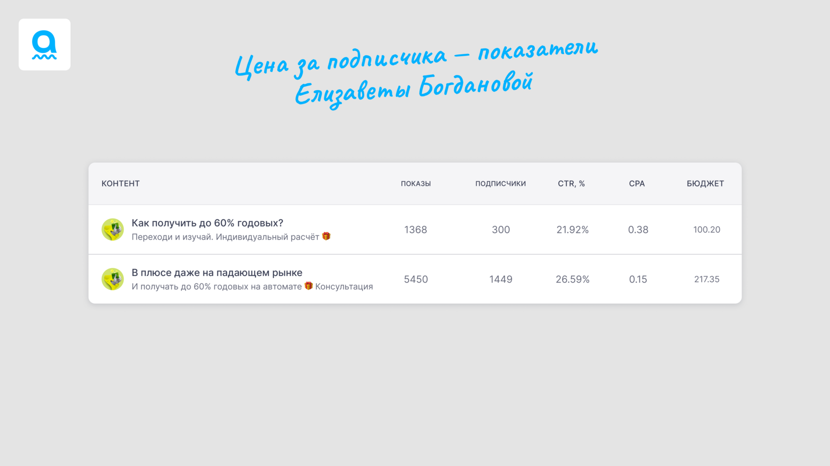 Особенно понравился формат с оплатой за подписчика. Не нужно угадывать, сколько будет переходов или какой выйдет CPM — просто платишь за результат.
