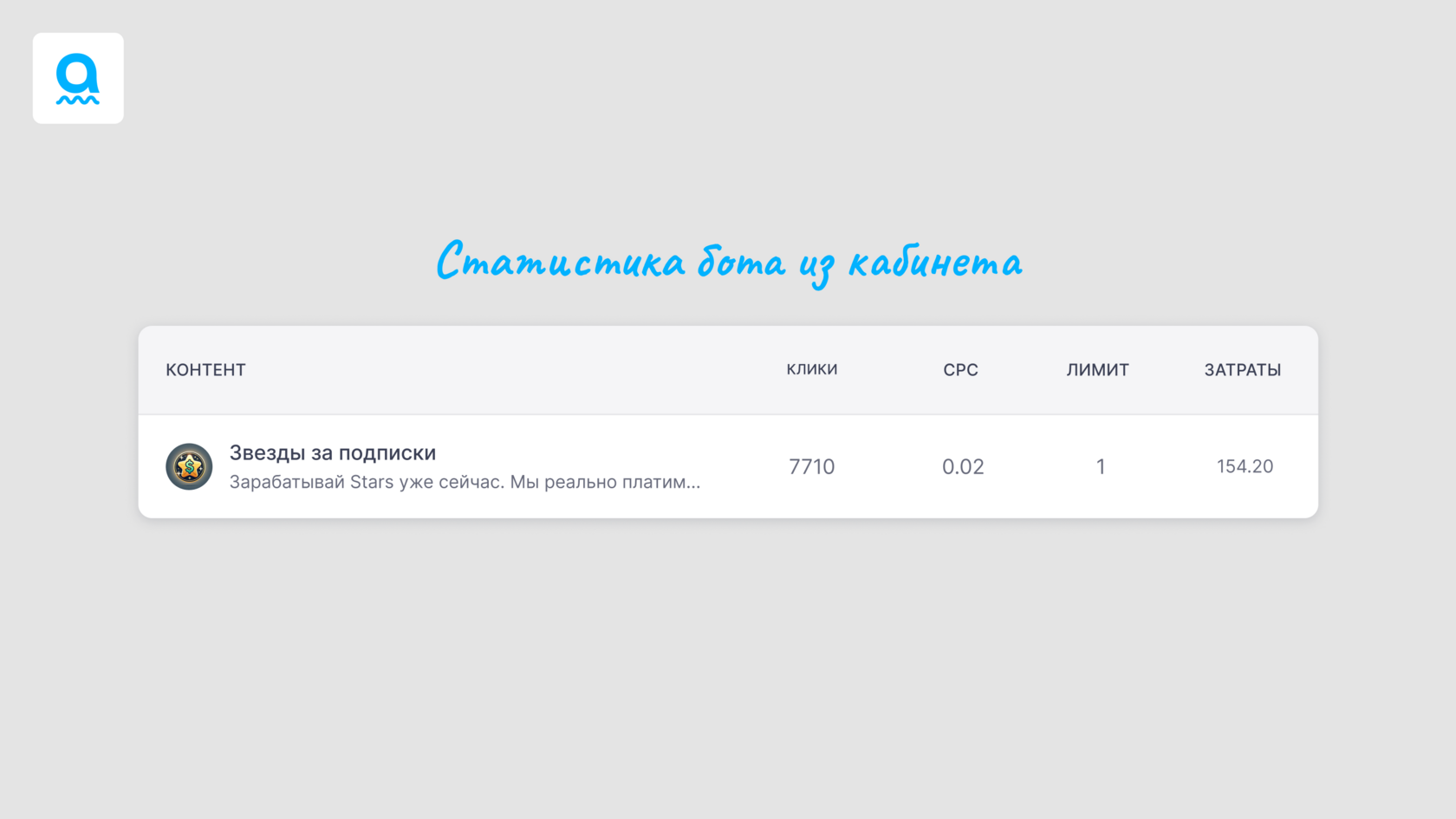 Формат рекламы через Telegram-ботов оказался неожиданно эффективным — подписывались охотно. Особенно порадовала возможность выставить лимит и не переживать за перерасход.
