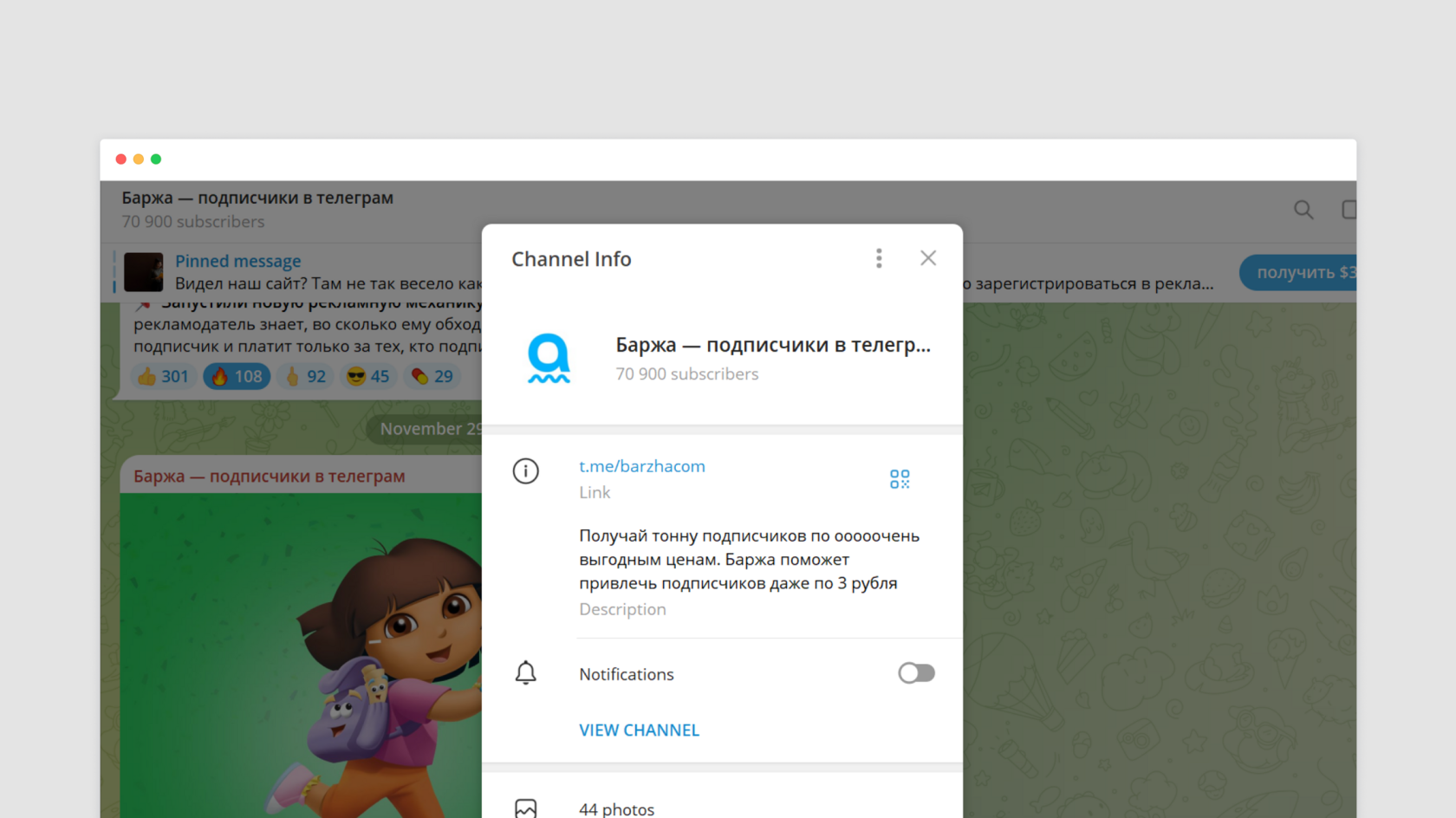 С помощью «Баржи» удалось привлечь довольно большое количество новых подписчиков, я еще даже не весь лимит использовала, осталось еще порядка $95. За время промо-кампании на канал подписались 800 человек. На нее я затратила примерно $160. Для сравнения: раньше за такие деньги я получала всего 200 подписчиков через «посевы». Это действительно впечатляющий результат, который говорит о высокой эффективности биржи.
