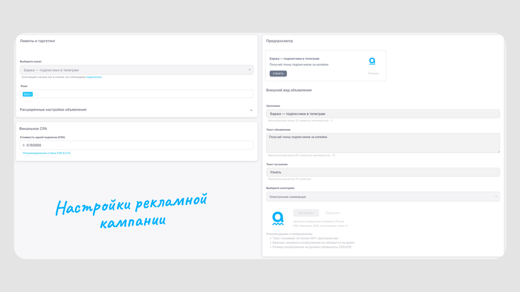 Канал у меня новый, и очень важно было не слить бюджет — Баржа как раз дала возможность аккуратно тестировать: можно выставить лимиты, быстро остановить кампанию, если что.