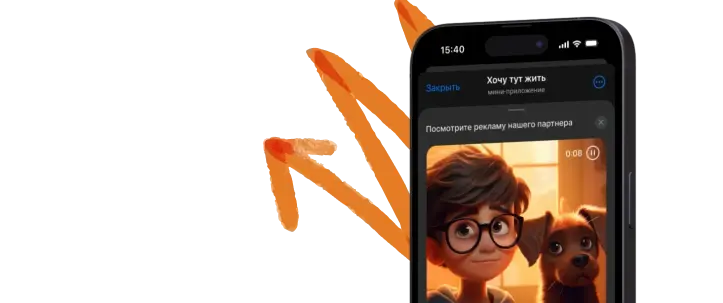 Реклама выглядит нативно: человек может увидеть баннер, кнопку или задание прямо во время использования приложения. Например: