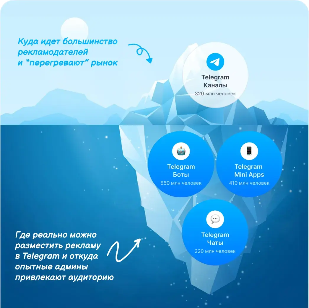 По сути, это как реклама внутри приложений на телефоне, только всё происходит прямо в Telegram. Что увеличивает конверсию в подписку.