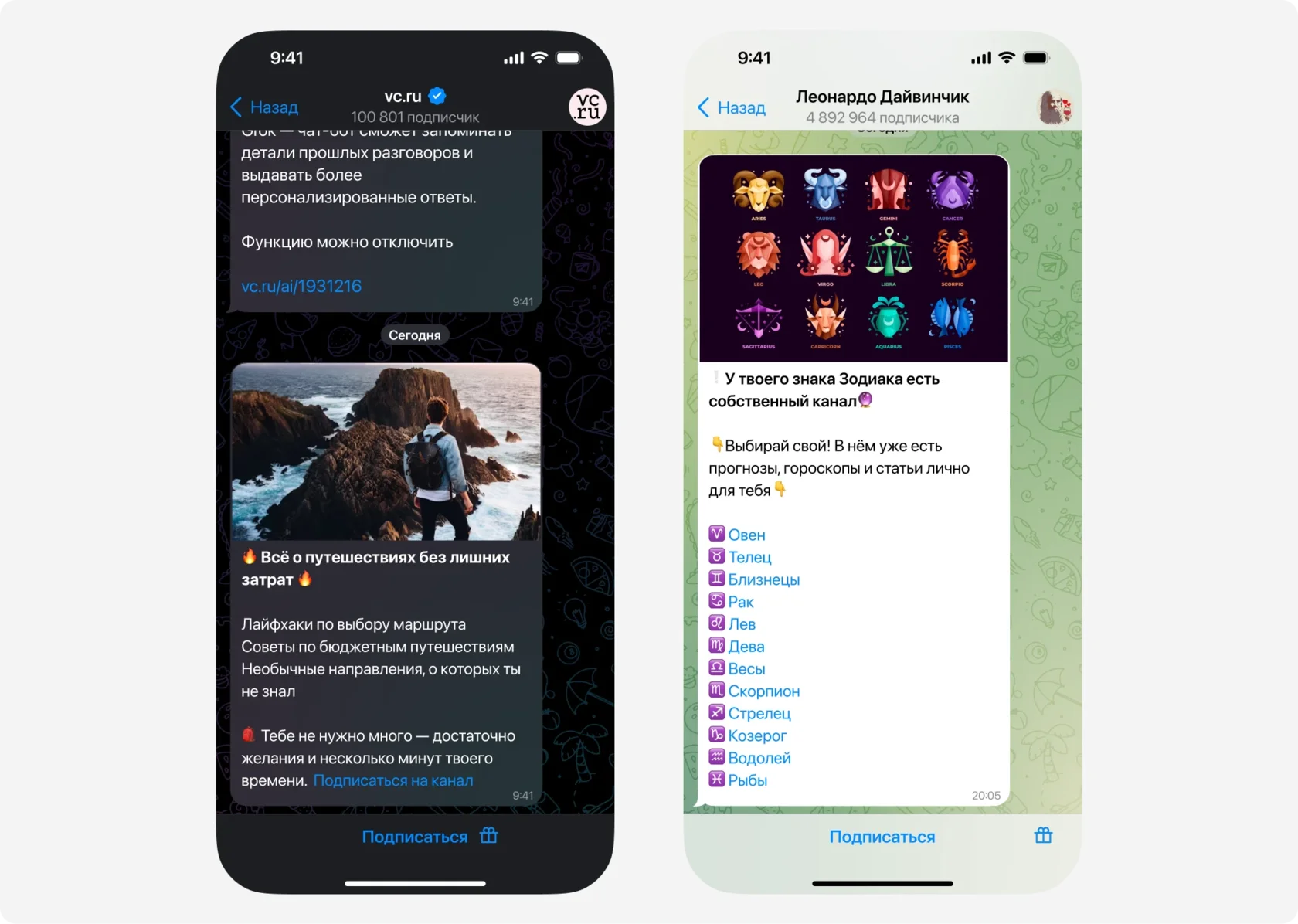 Пример: vc.ru и десятки тысяч других каналов с разными тематиками.