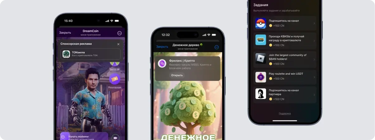 В этом формате вы показываете рекламу пользователю в мини-приложениях телеграм. Например, в тапалках, играх и подобных.